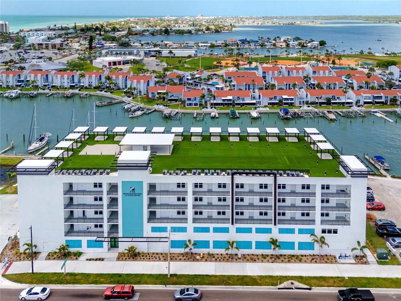 ONE OR MORE PHOTOS ARE VIRTUALLY STAGED Welcome to the crown jewel of Madeira Beach living. This stunning penthouse residence in a boutique, luxury building delivers an elevated coastal lifestyle with resort-style amenities and breathtaking panoramic views.Unit 501 is an unfurnished 3-bedroom, 3-bathroom penthouse with a versatile bonus room, designed with an elegant open-concept layout, soaring ceilings, and expansive glass sliders that flood the home with natural light. The spacious living room and primary suite open to a large private balcony showcasing sweeping views of the Gulf, beach, pool, canals, and Intracoastal - the perfect setting for unforgettable sunsets.The chef's kitchen is a true centerpiece, featuring stainless steel Caf? appliances, abundant cabinetry, and a large island with bar seating, sink, and dishwasher, seamlessly flowing into the dining and living areas for effortless entertaining. The primary suite offers a walk-in closet, additional hall closet, and a spa-inspired bathroom with dual sinks, built-in seating, powder drawer, and a walk-in shower. Each guest bedroom includes generous closet space and an ensuite bath - one with a walk-in shower and the other with a shower/tub combination that also provides convenient hallway access.The flexible bonus room is ideal for a home office, nursery, or library. An oversized laundry room includes a washer and dryer, sink, countertop workspace, cabinetry, and shelving, while additional storage closets are thoughtfully positioned throughout the home.Residents enjoy gated security with key/fob access, two assigned covered garage parking spaces, guest parking, golf cart spaces, and ground-level storage for bikes, kayaks, and paddleboards. Relax by the heated pool and hot tub overlooking the canal, or head to the rooftop deck to take in 360-degree views stretching from Madeira Beach and Redington Beach to Treasure Island and downtown St. Petersburg. Unit 501 also features a private rooftop pergola exclusive to the residence, complete with power for a fan and beverage fridge - a rare and exceptional outdoor retreat.This is luxury coastal penthouse living at its finest, combining modern design, premium amenities, and an unbeatable Madeira Beach location.